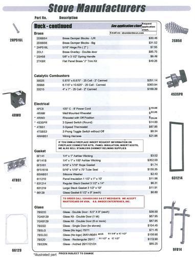 BLUE RIDGE (cont.) & BUCK PARTS...................... Click on photo above to enlarge. Email us to request application chart for Buck Stoves.