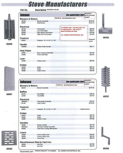 For available application charts, questions, or information Email: woodstoveparts@hotmail.com